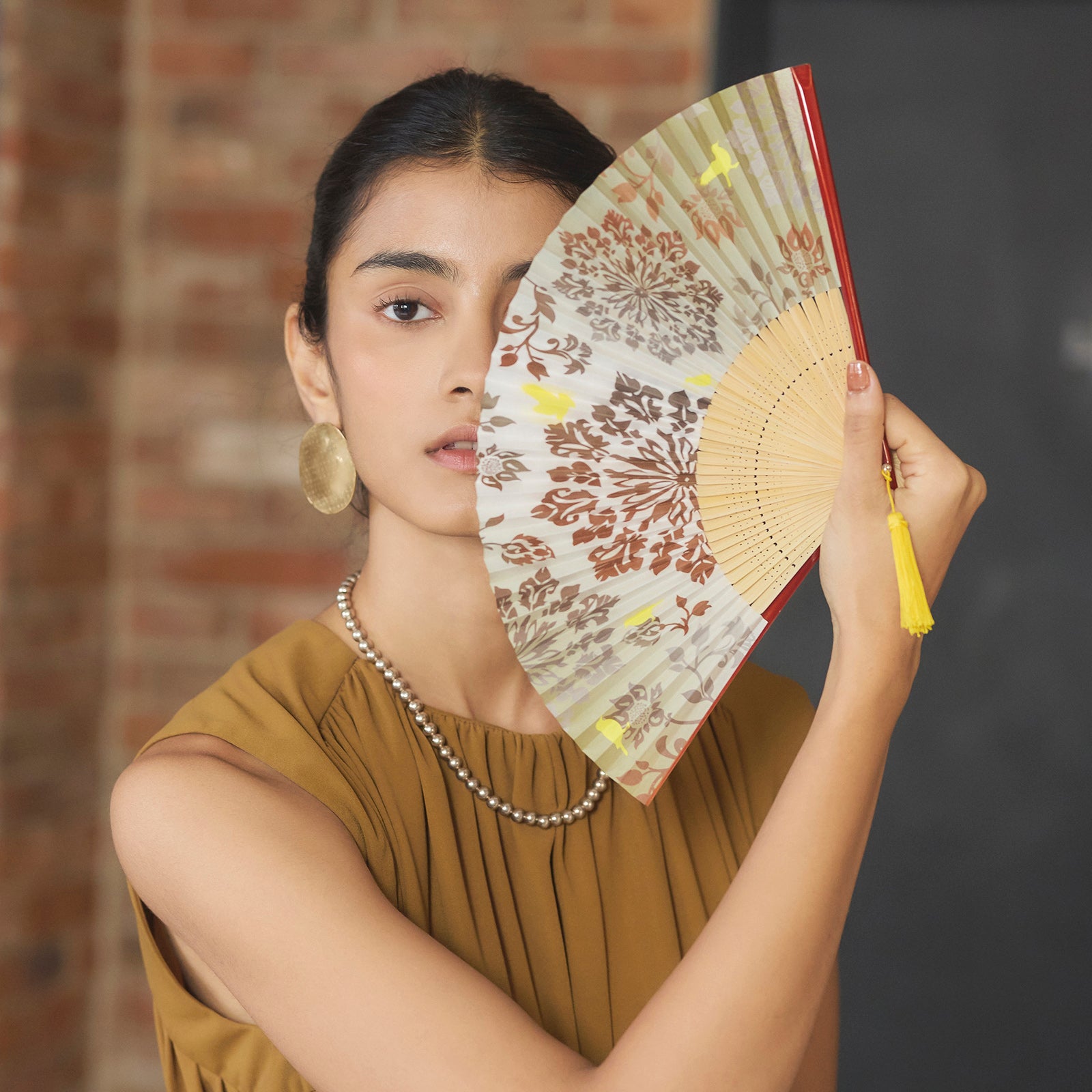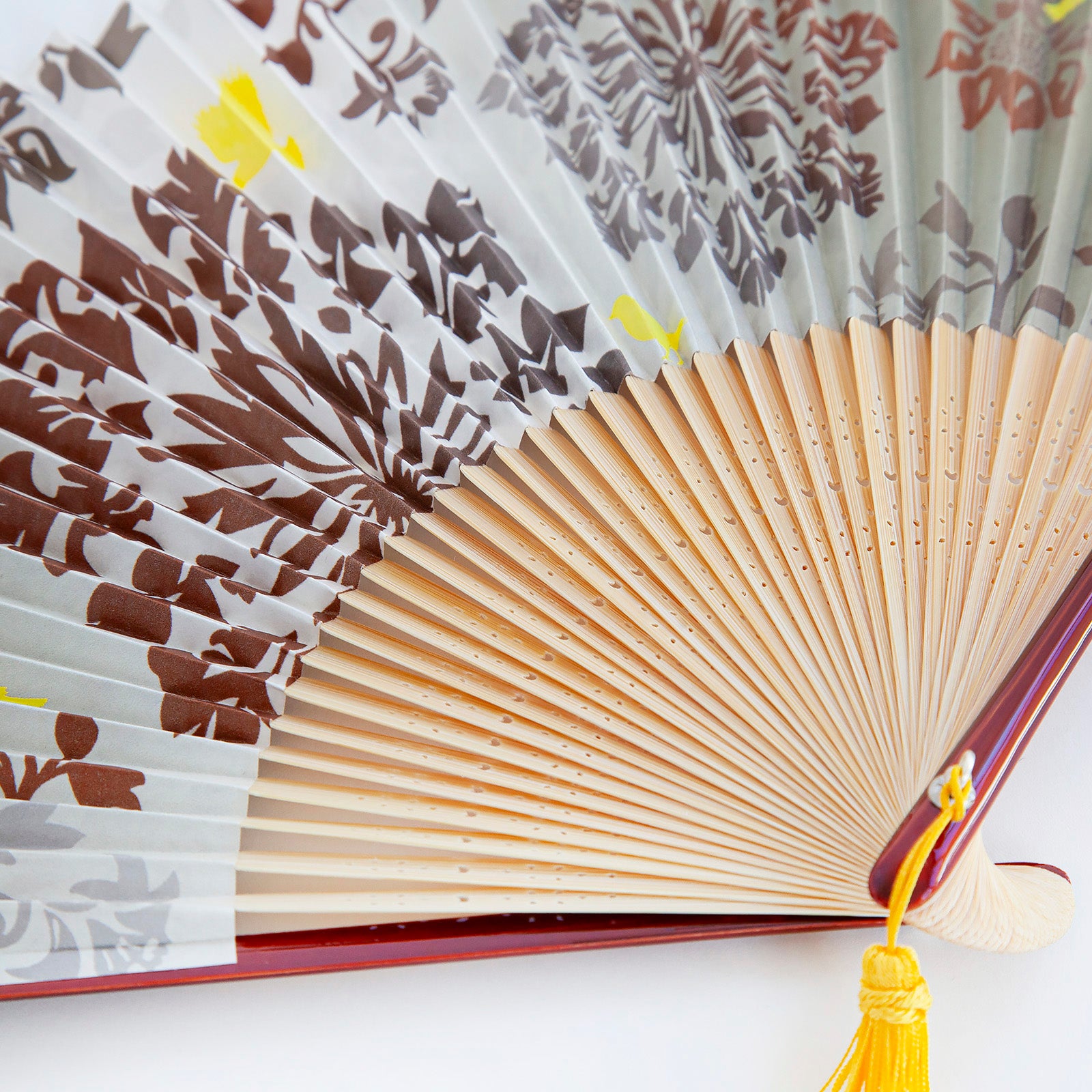 The folding fan comes with your choice of twisted tassel to hang from the joint pin. A classic Japanese cultural element, these tassels exclusive to FLY HIGH are made from pure silk and have a soft, smooth feel that adds a refreshing accent to this fan.