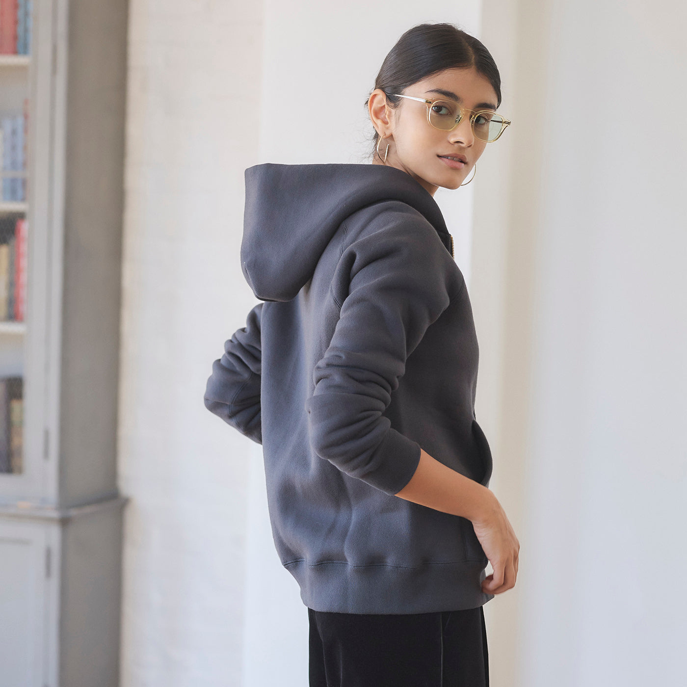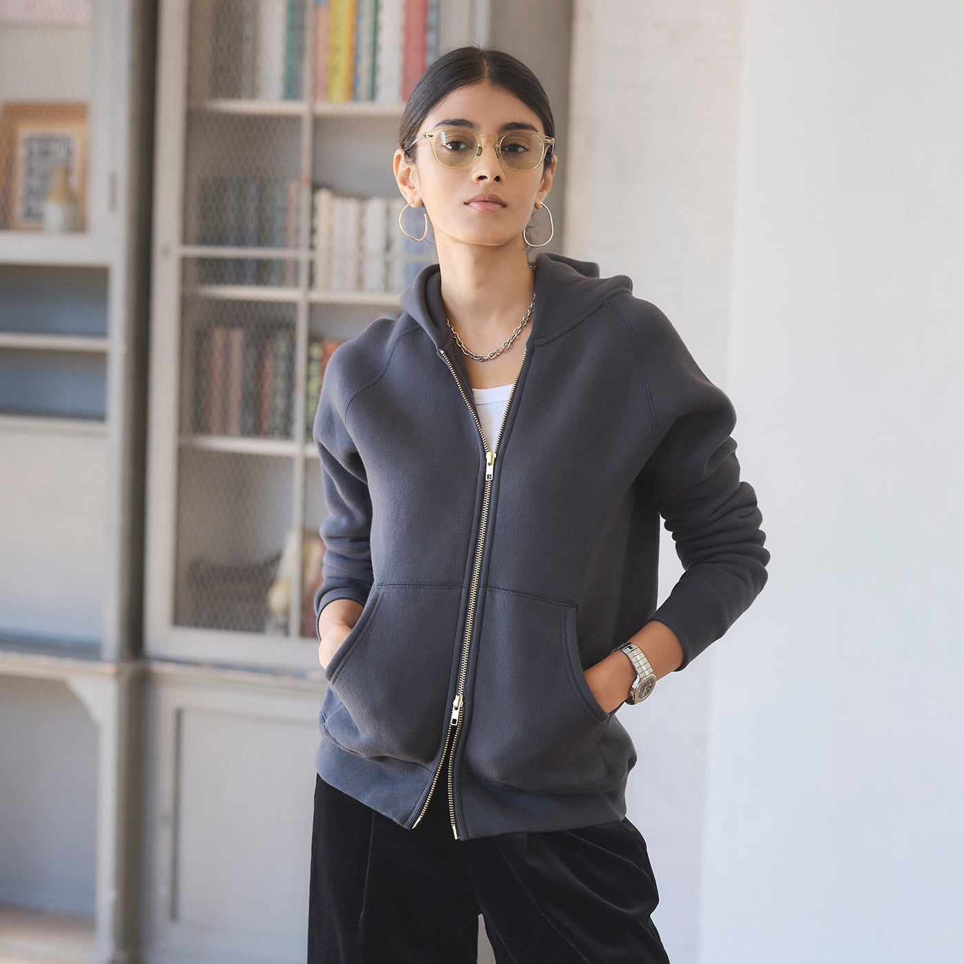 旅先や日常でも、ぱっと1枚羽織るだけできちんと感も出る、きれいめなパーカーを作りたいと思い誕生しました。